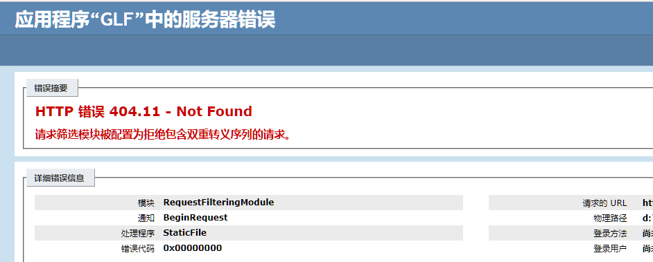 请求筛选模块被配置为拒绝包含双重转义序列的请求。